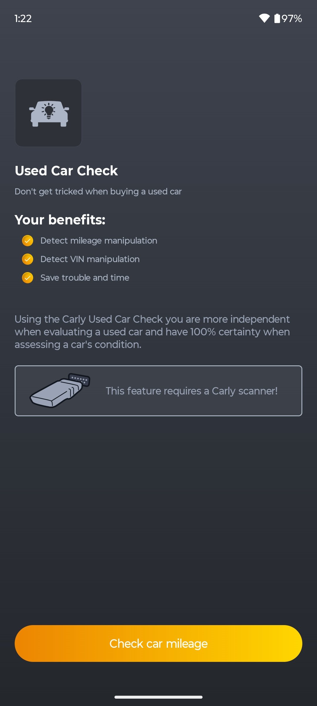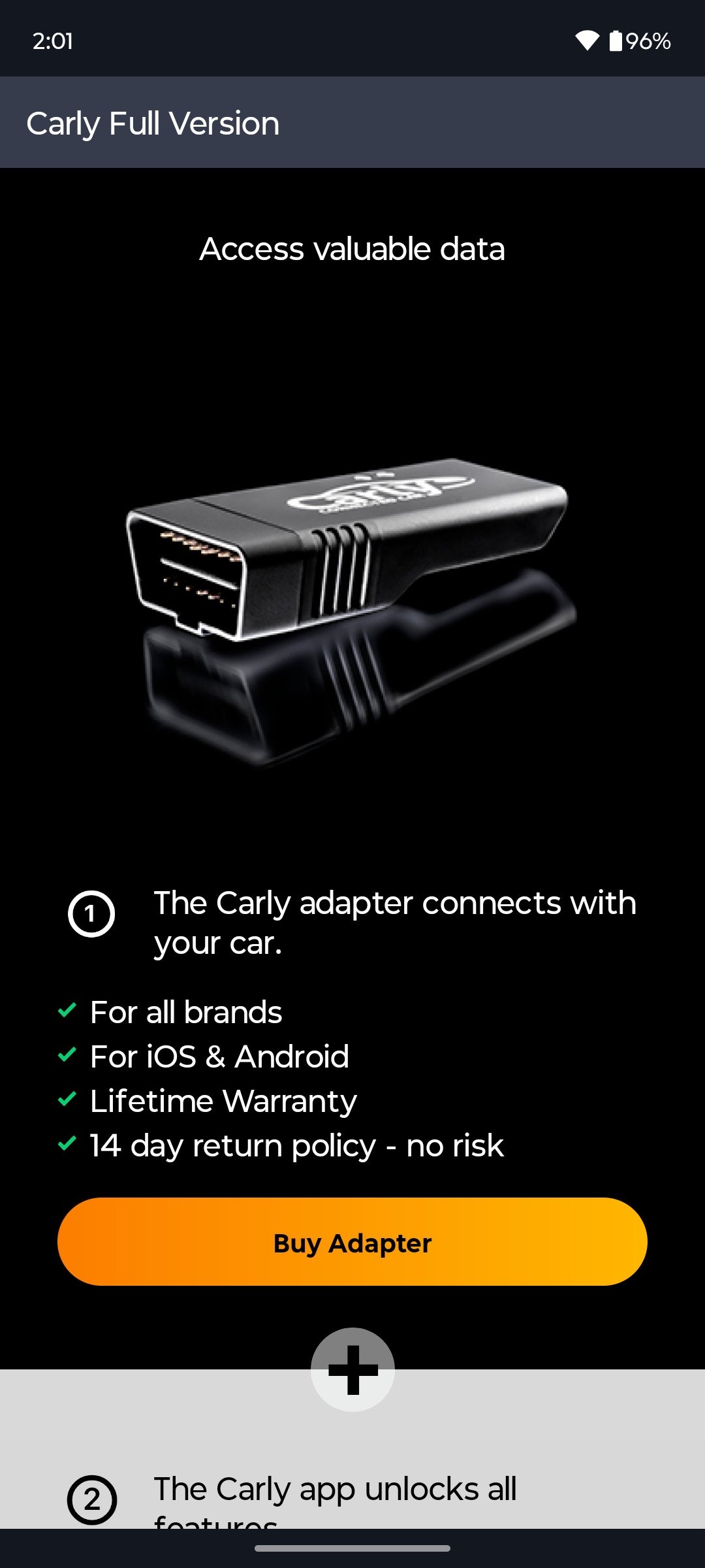 Você pode baixar Carly grátis, mas para usá-lo é necessário um adaptador OBD2 (vendido pela Carly) e muitos recursos avançados são bloqueados após uma assinatura anual. Com a versão básica você terá escaneios básicos.