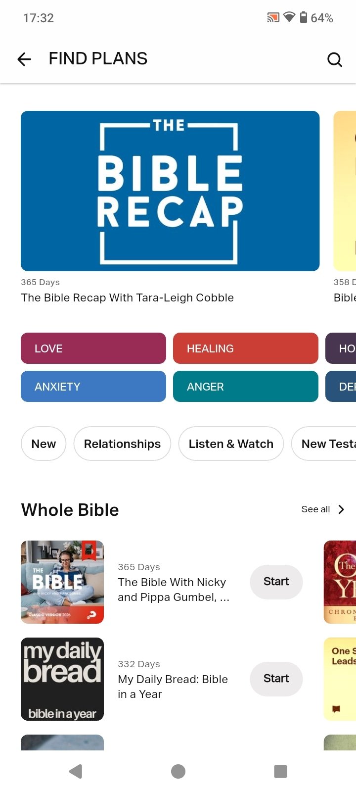 - Daily, thematic, and yearly reading plans.