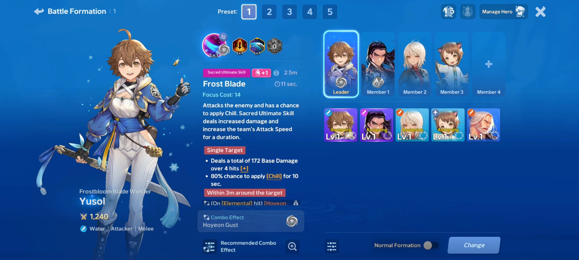 - Teams of five heroes; in turn-based combat we control all of them and in action we control one lead hero with four allies.