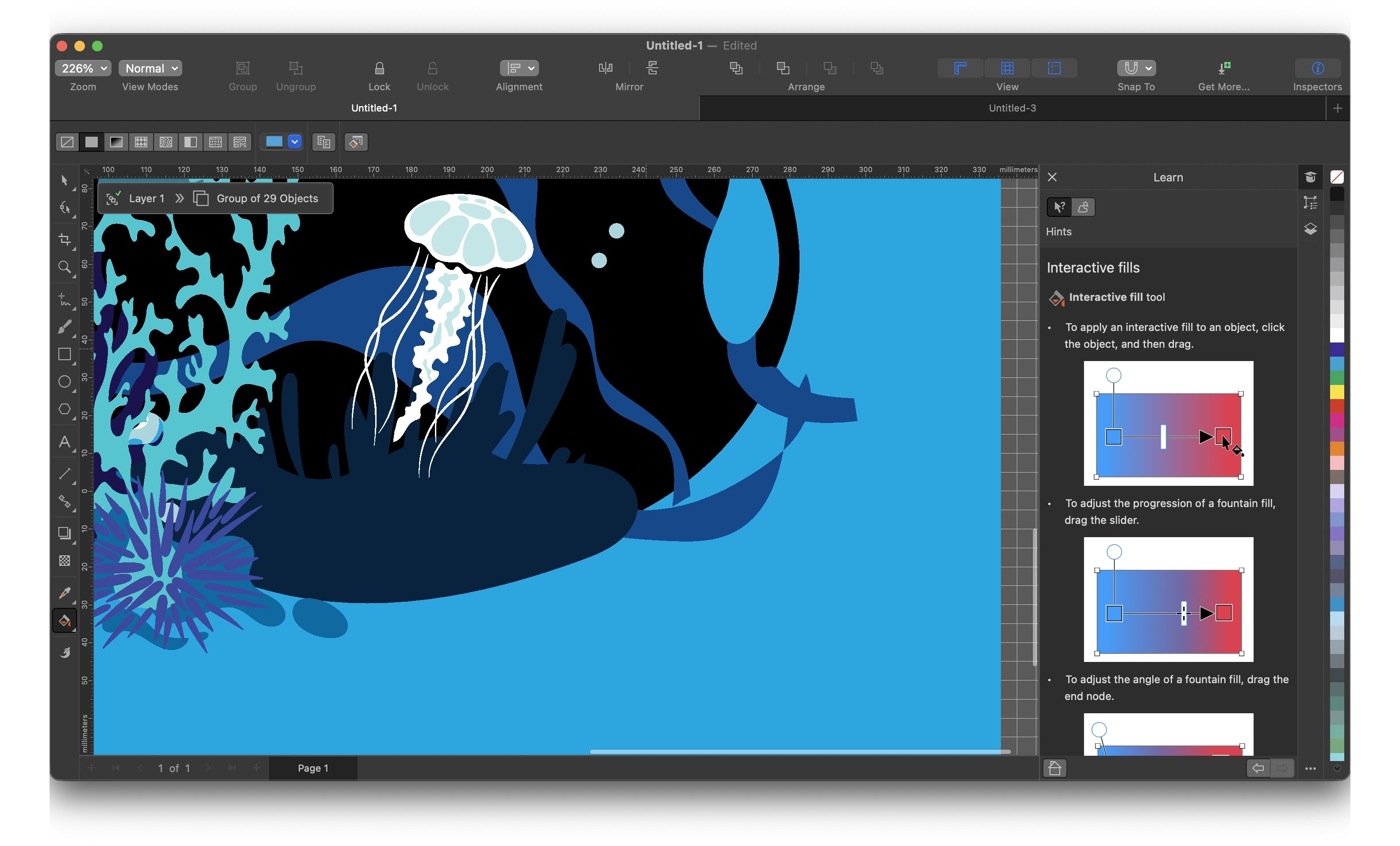 The macOS version of CorelDRAW Graphics Suite is not a simple adaptation; it has been developed to take full advantage of the Apple ecosystem. It offers a native experience, with support for dark mode, the MacBook Pro Touch Bar, and the Sidecar feature, which lets you use an iPad as a second display. Compatibility with the Apple Pencil is exceptional, providing pixel-perfect precision and pressure sensitivity for digital illustration. In addition, its performance is optimized for Apple Silicon chips (M1 and later), ensuring smoothness and speed even in the most demanding projects. Its main features include: