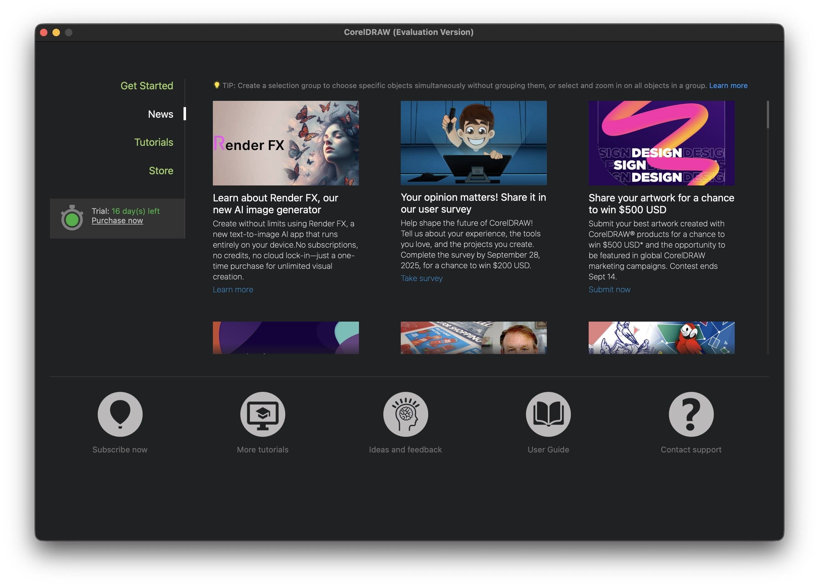 CorelDRAW Graphics Suite 2025 is a suite of integrated applications designed to tackle any design project. Its main strength lies in vector illustration, but the package goes much further, including tools for page layout, photo editing, font management, and working with graphics in the cloud. It is the ideal solution for creating everything from logos and complex illustrations to marketing materials, social media graphics, and large-scale print projects. Its focus on an intuitive workflow allows professionals and amateurs alike to achieve high-quality results.