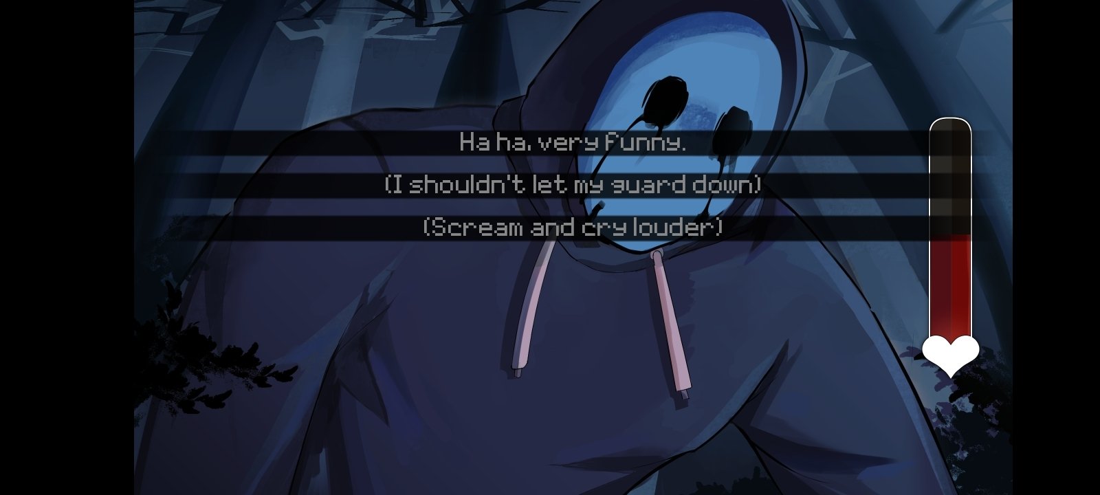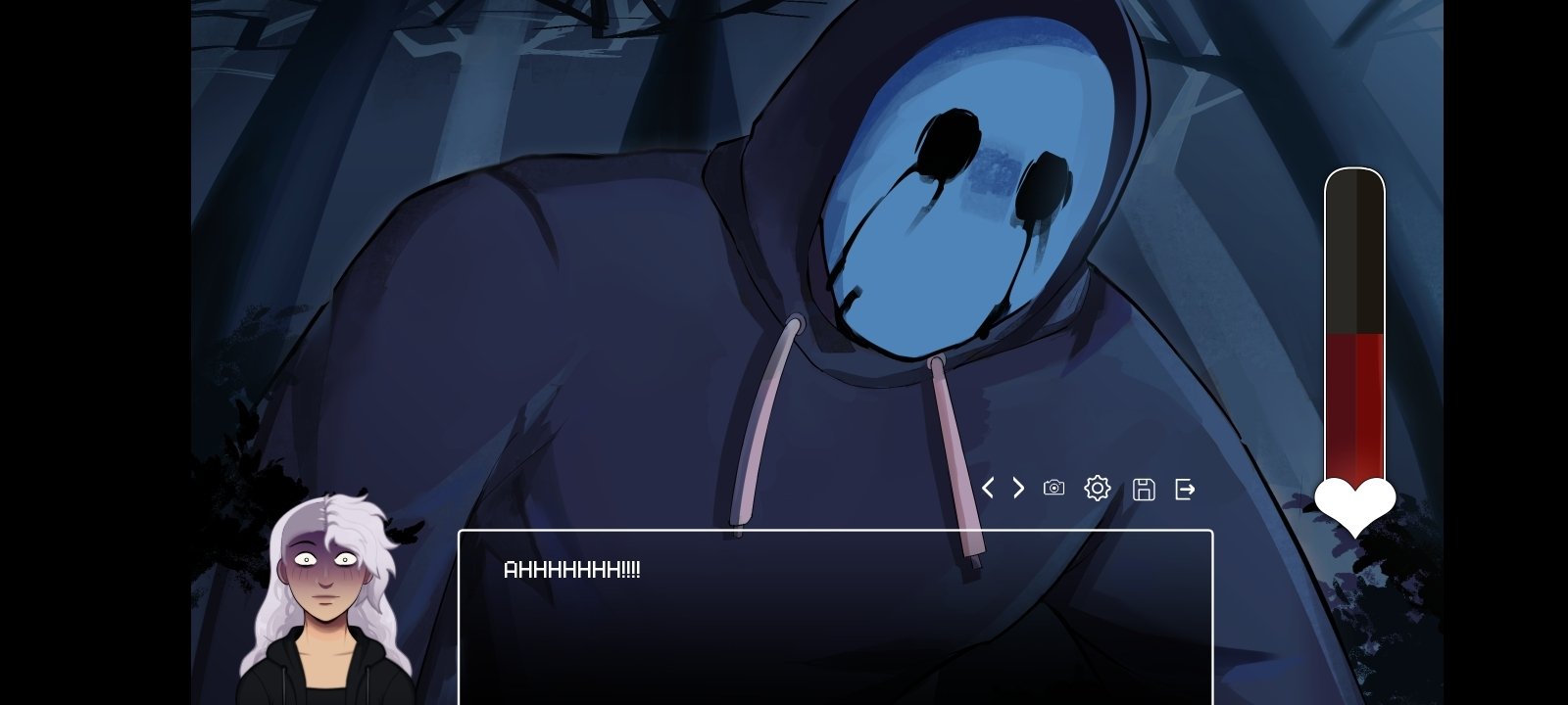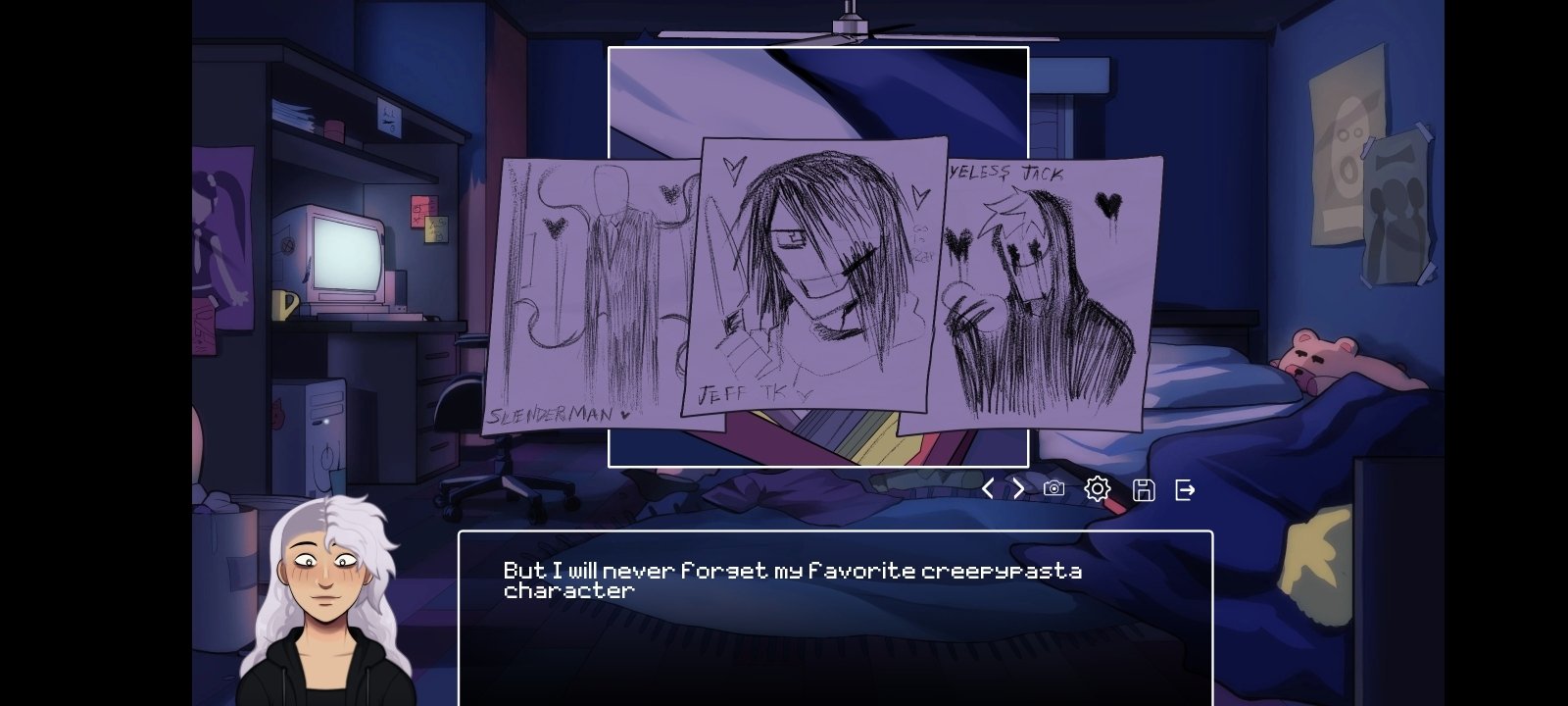 This title features an uncomplicated and effective mechanic: reading dialogues, choosing responses, and unlocking different paths based on your choices. Additionally, in some scenes we will need to interact with the screen to survive the attack of creepypasta killers.