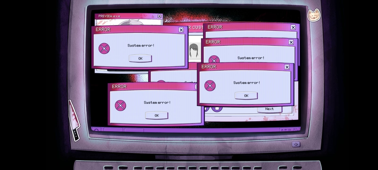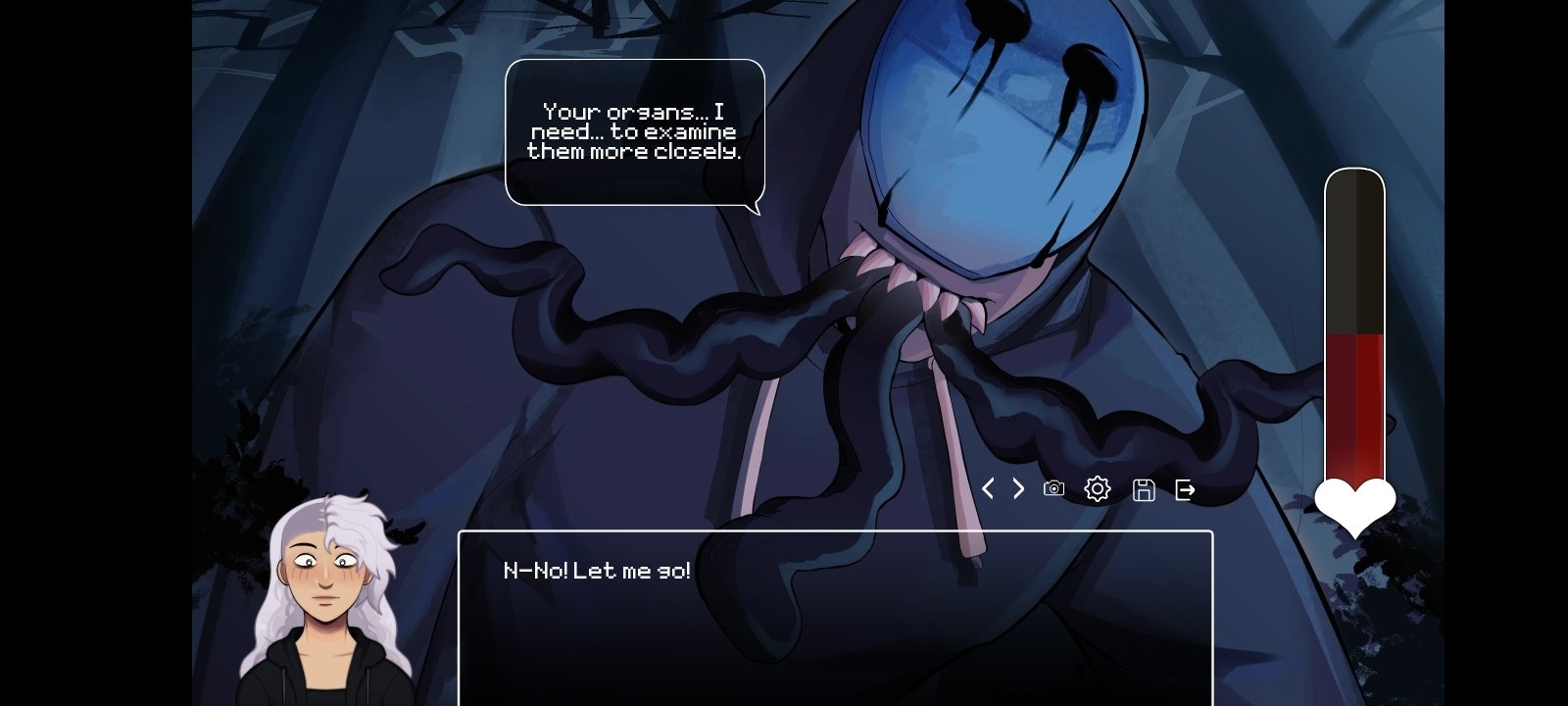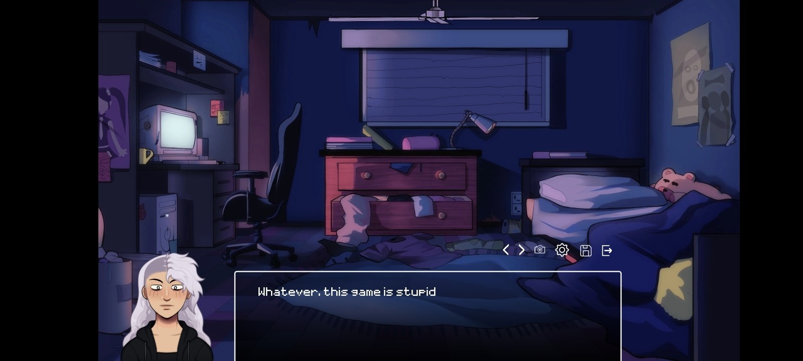 This title features an uncomplicated and effective mechanic: reading dialogues, choosing responses, and unlocking different paths based on your choices. Additionally, in some scenes we will need to interact with the screen to survive the attack of creepypasta killers.