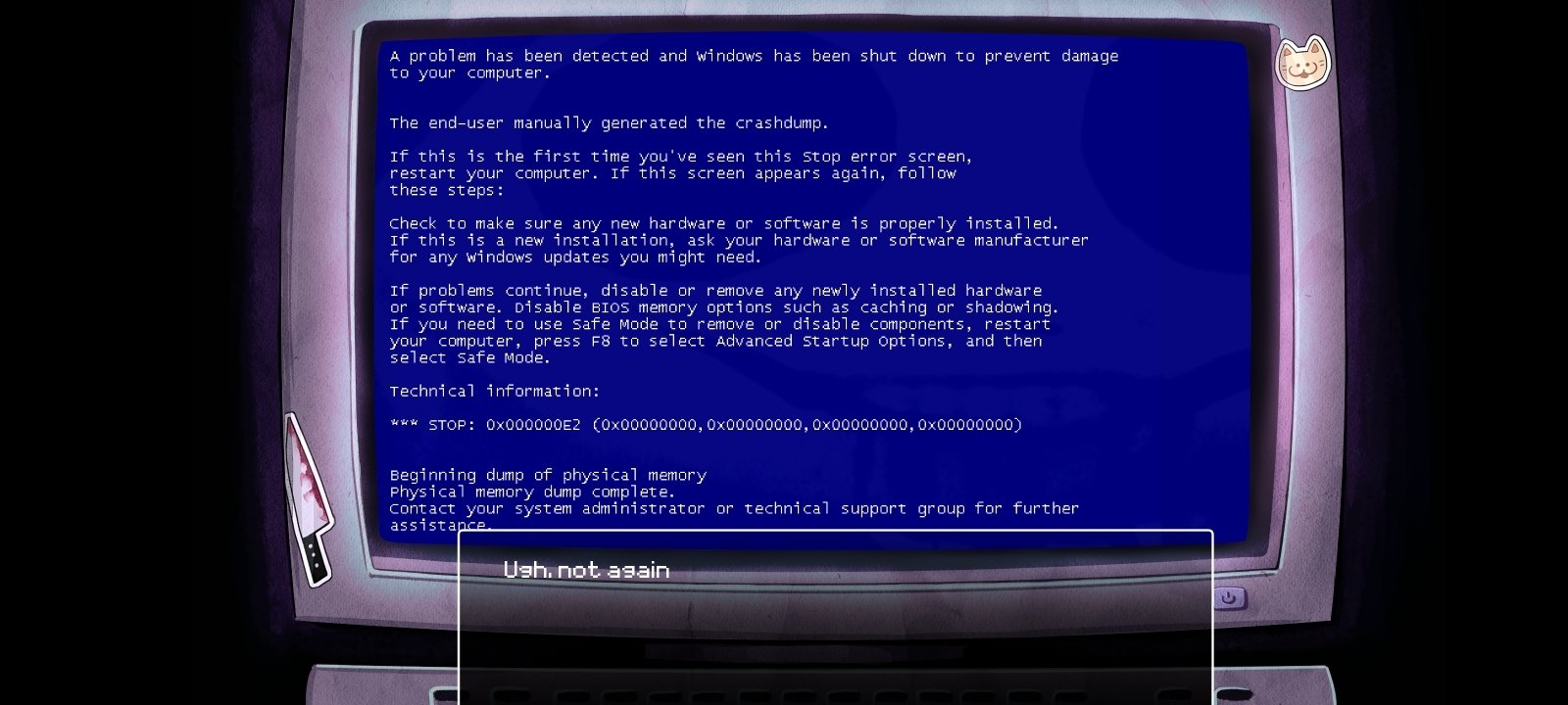 - Visual novel with a strong component of black humor and satire.