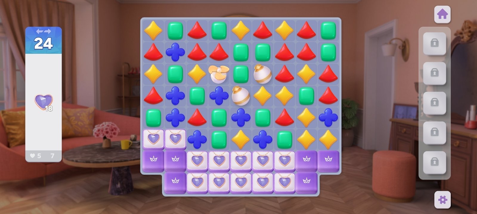 - Hundreds of match-3 puzzle levels with dynamic objectives and rewards.