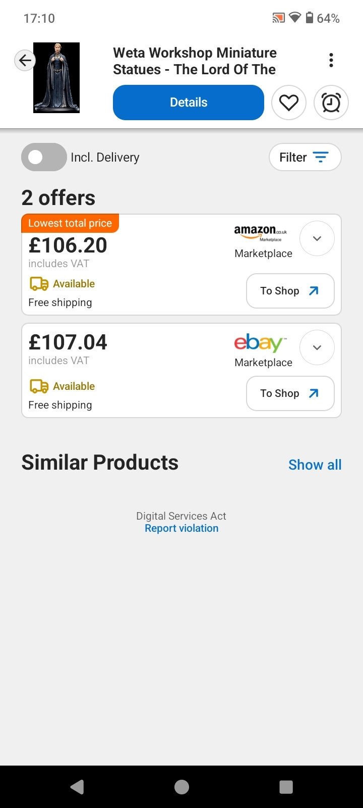 The Android app of the price comparison tool