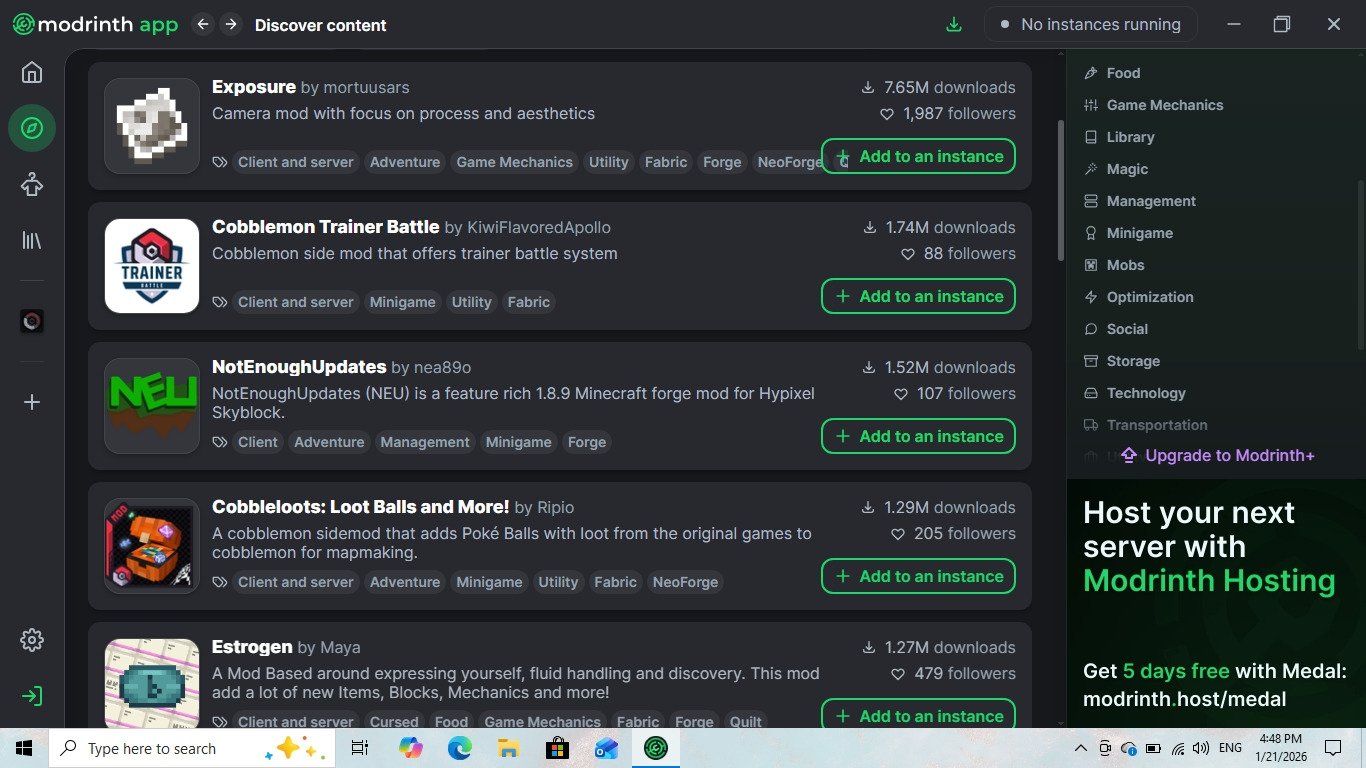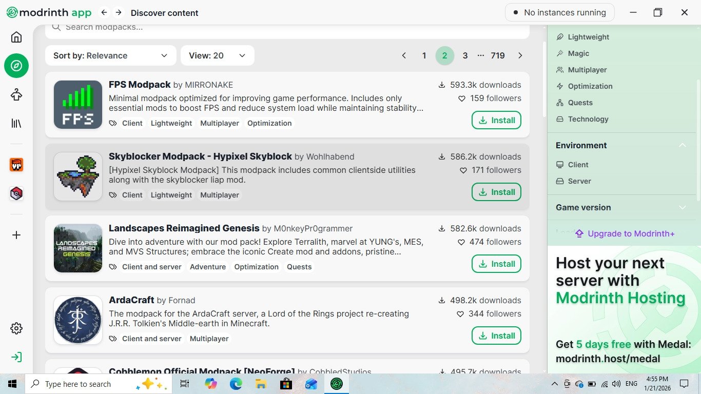 On the other hand, CurseForge boasts a vast library of mods and packs, along with integrated tools such as Overwolf, making it an attractive option for many users. But it all comes down to whether you’d rather have a lighter, safer, more modern platform, or if you are willing to give up performance and simplicity to deal with an outdated-looking interface in exchange for a bigger catalog.