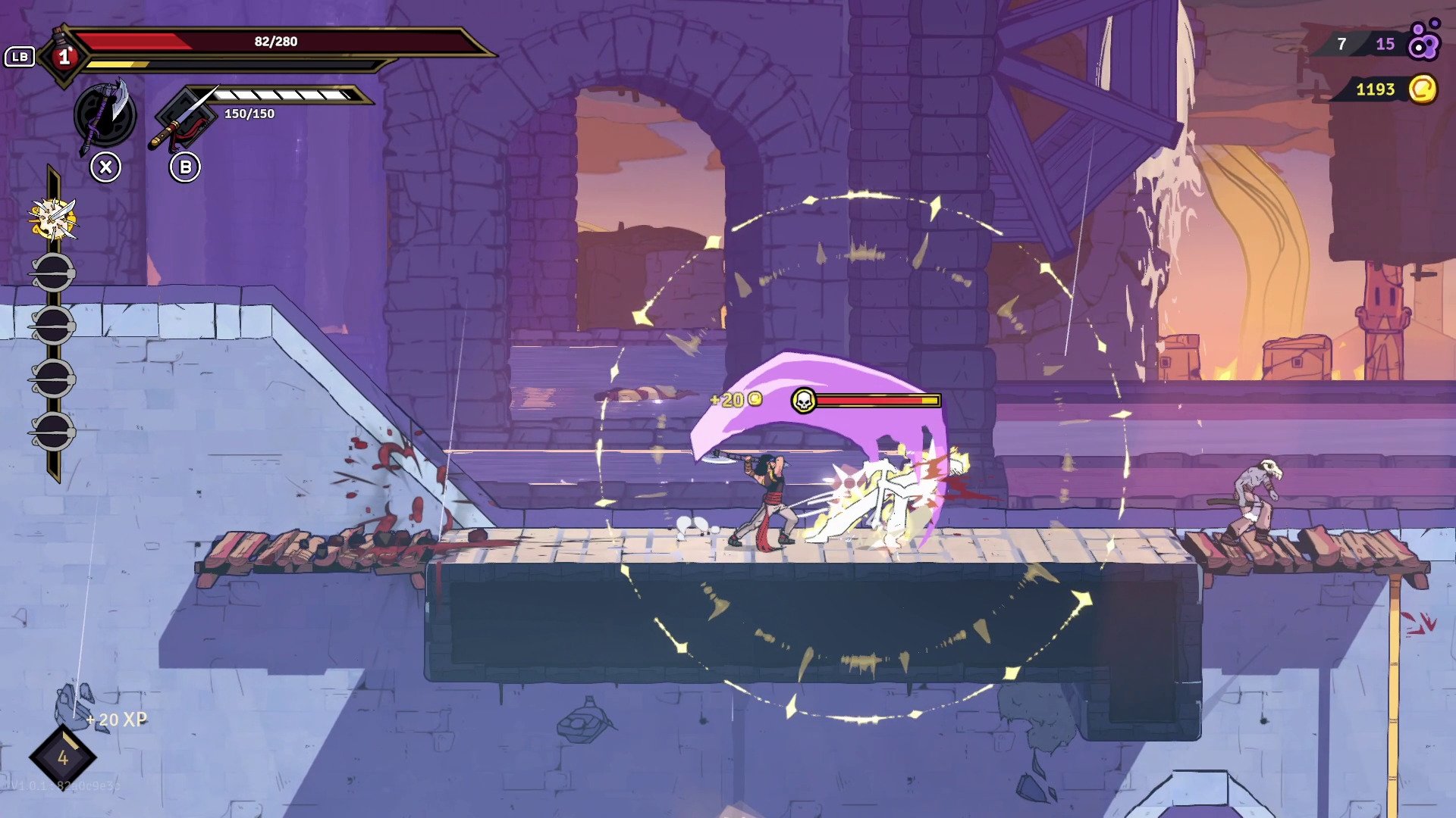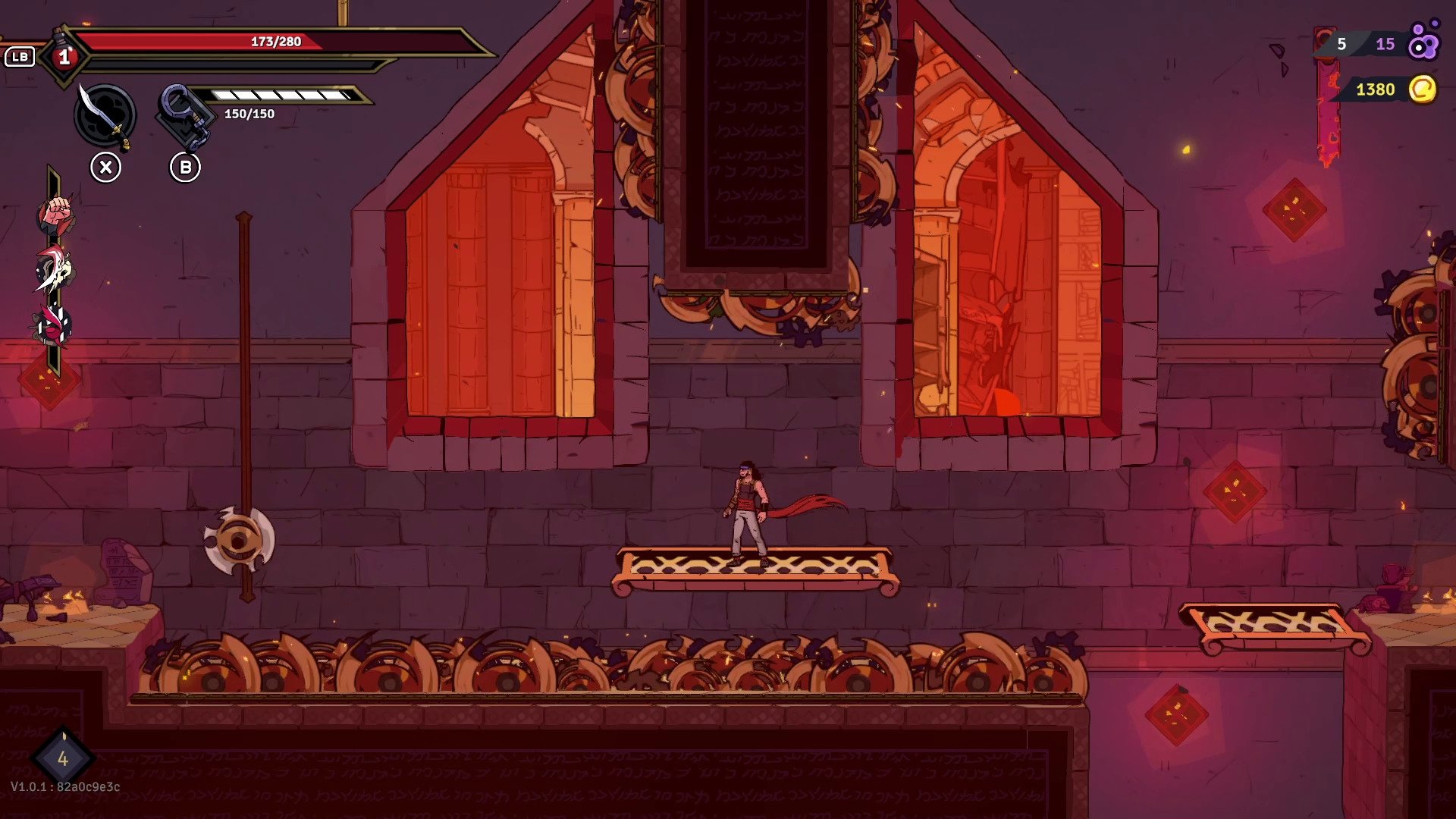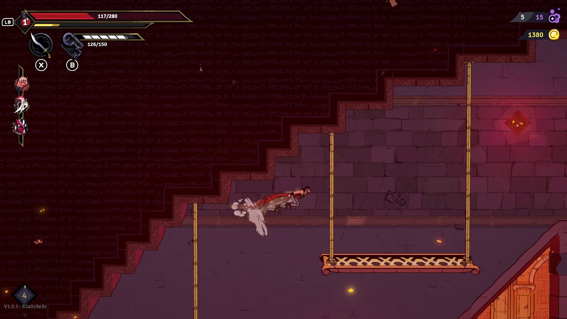 2D side-scrolling roguelite with demanding parkour and fast-paced combat