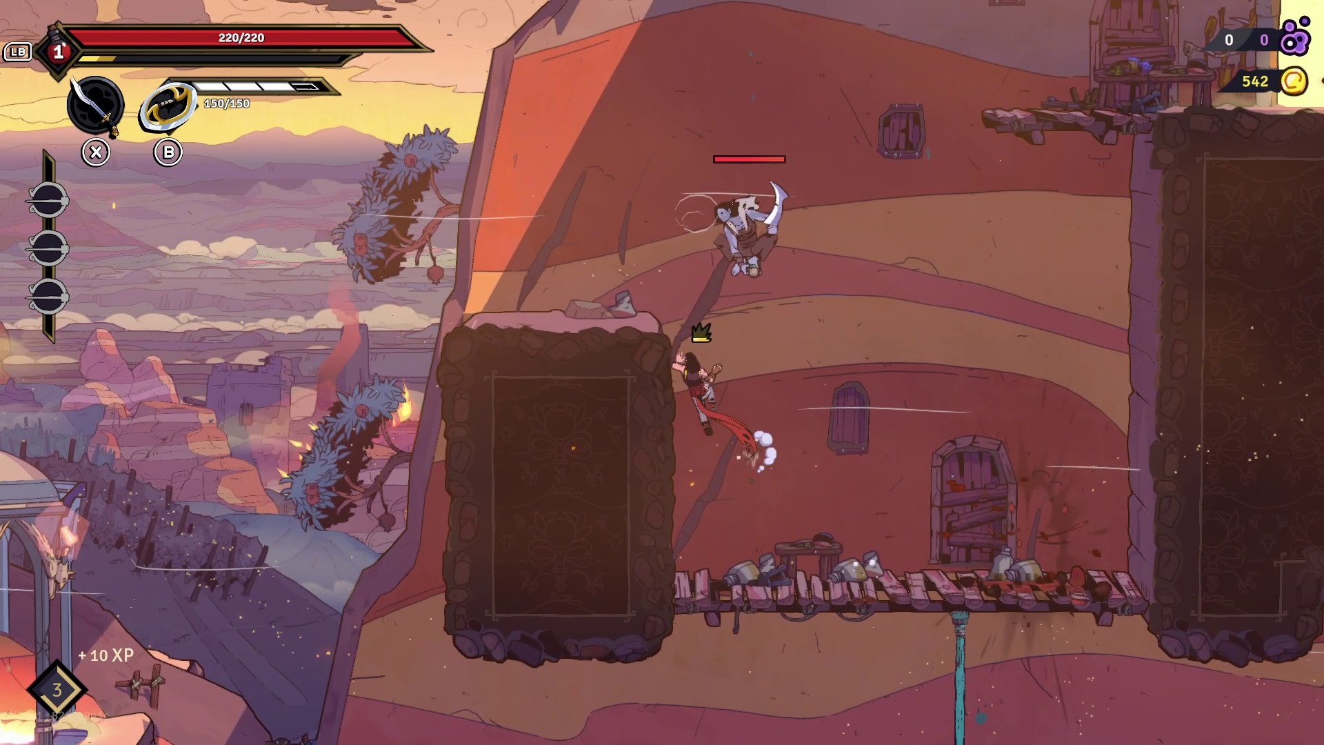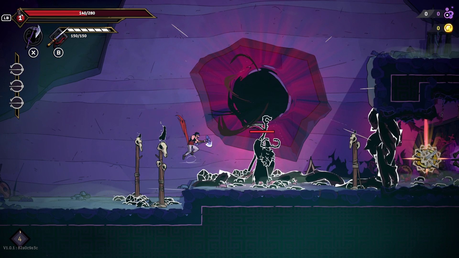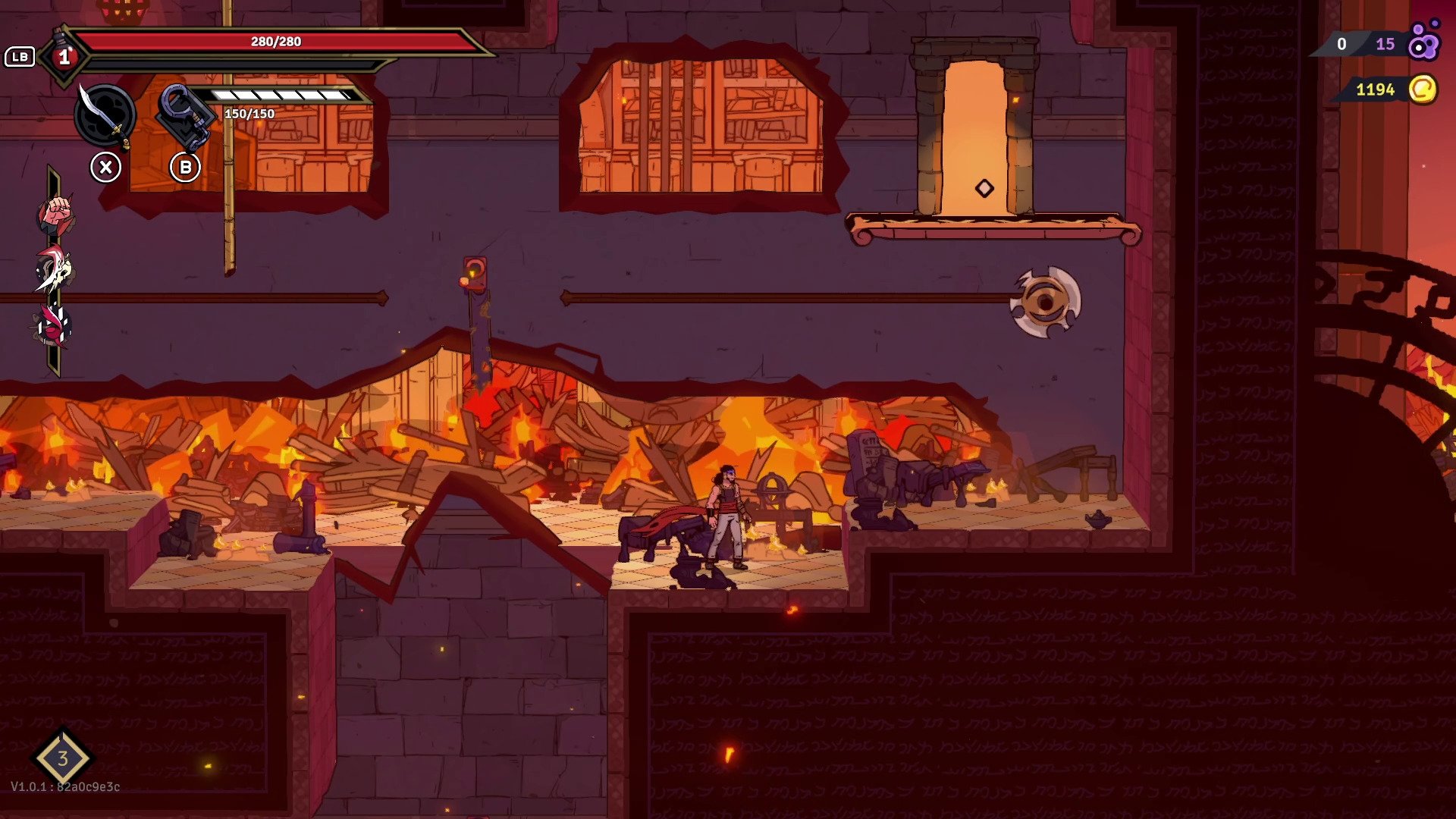 2D side-scrolling roguelite with demanding parkour and fast-paced combat