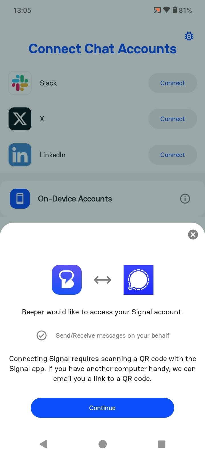 Para comenzar a usar Beeper app, basta con crear una cuenta y vincular las aplicaciones que se deseen utilizar. La interfaz permite alternar fácilmente entre conversaciones, responder, buscar mensajes o recibir notificaciones sin necesidad de abrir cada app individualmente. No obstante, Beeper APK puede presentar algunos problemas a la hora de vincular las cuentas.