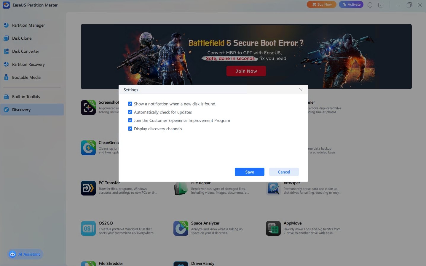 Una de las mejores características de este programa es que dispone de un asistente que nos guiará en cualquier proceso, simplificando de esta forma la labor de dividir un disco en varias partes. Descargar EASEUS Partition Master para PC te ayuda a descubrir el modo más sencillo de gestionar y administrar tus particiones. Un software de gran calidad que es utilizado tanto en entornos profesionales y como en domésticos además de por proveedores de servicios.