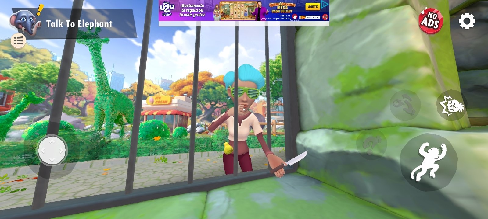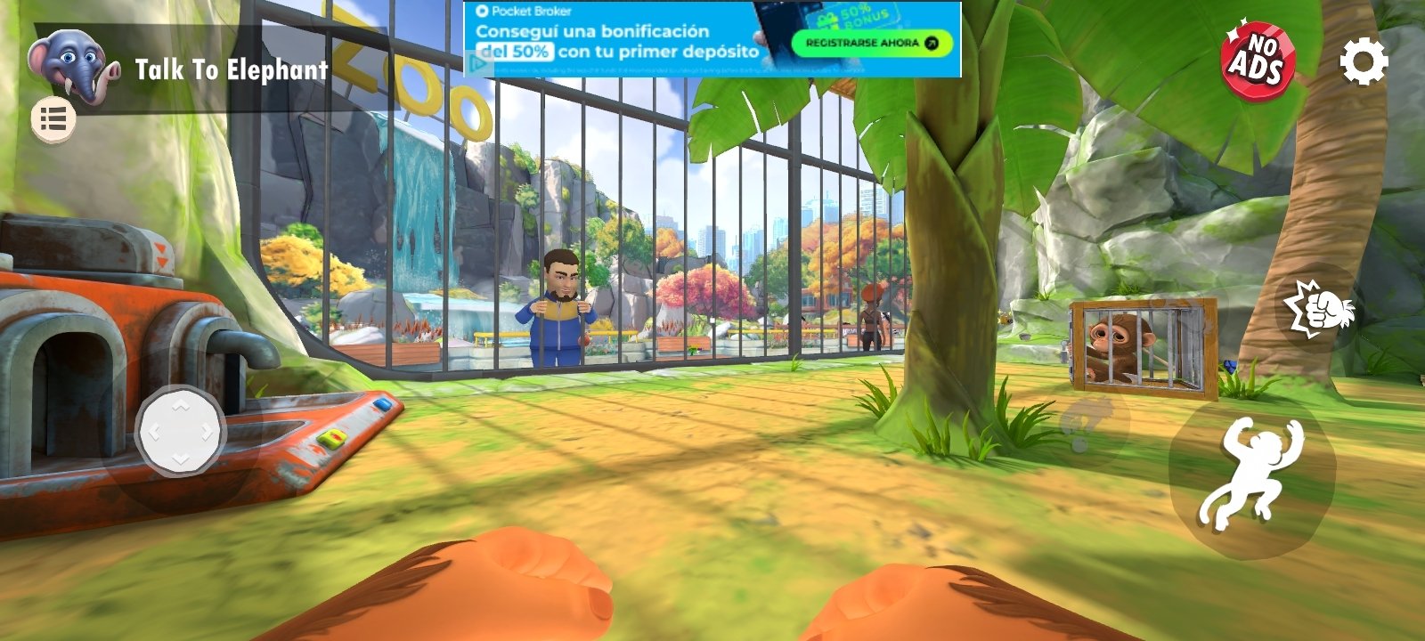 I Am Monkey APK es un simulador en primera persona de animales con unos coloridos gráficos en 3D. Nuestra misión en este juego es controlar a un mono que vive dentro de una jaula en el zoológico. La experiencia se centra en la interacción con distintos escenarios y objetos, utilizando un sistema de físicas exageradas que condiciona tanto el movimiento como las acciones del personaje.