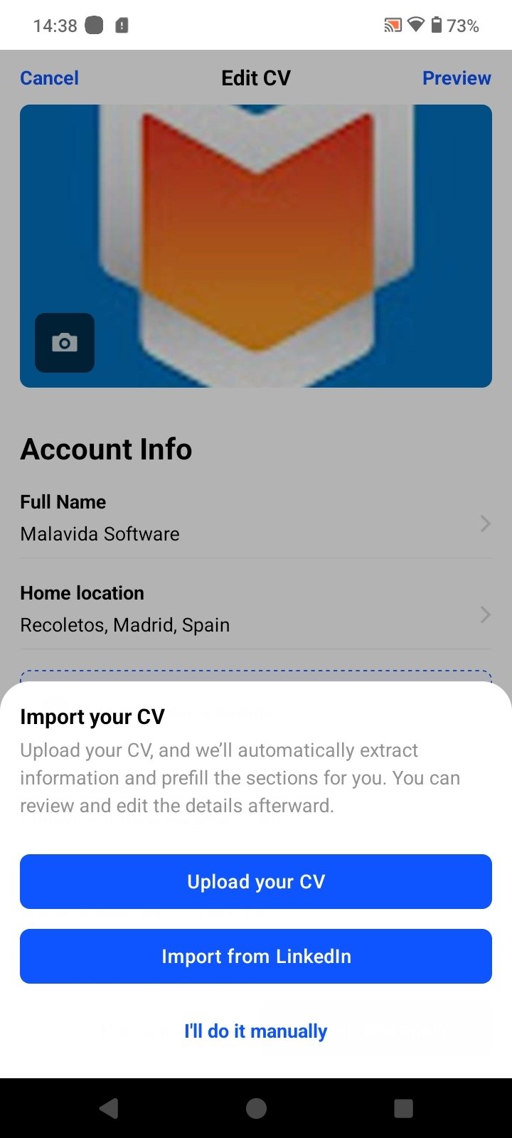 - Posibilidad de subir un CV ya creado, importarlo desde LinkedIn o crear uno nuevo.