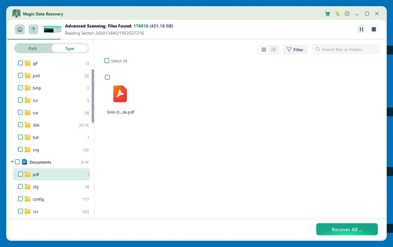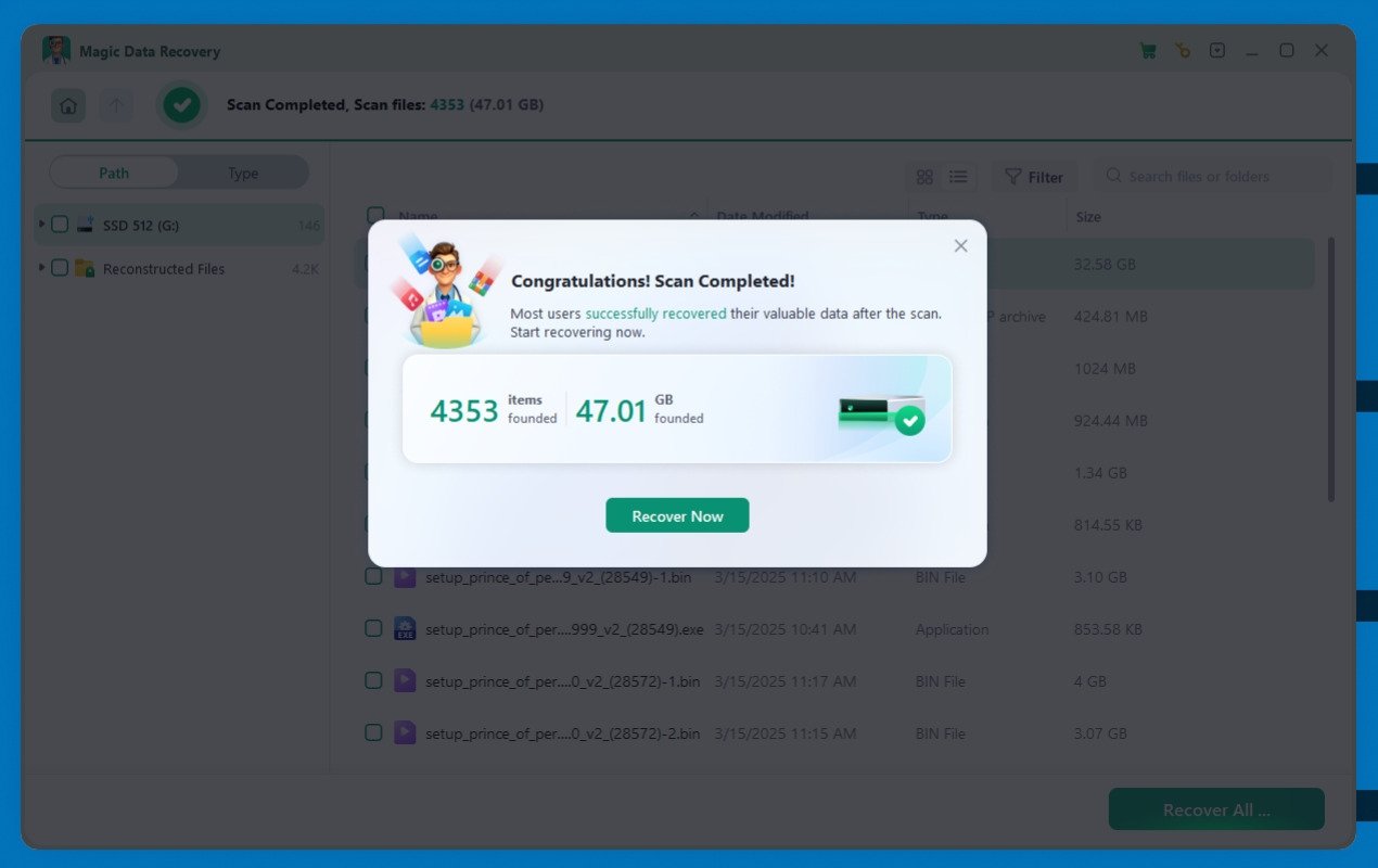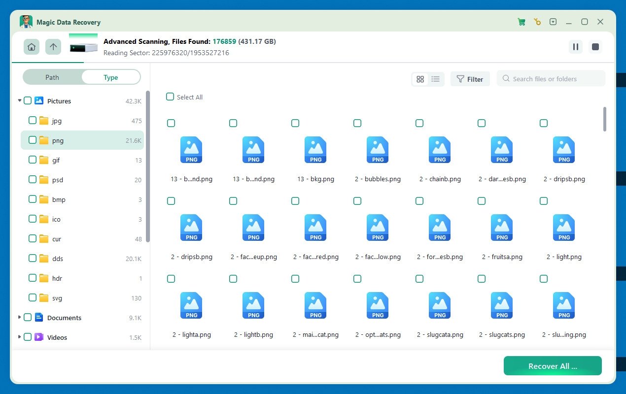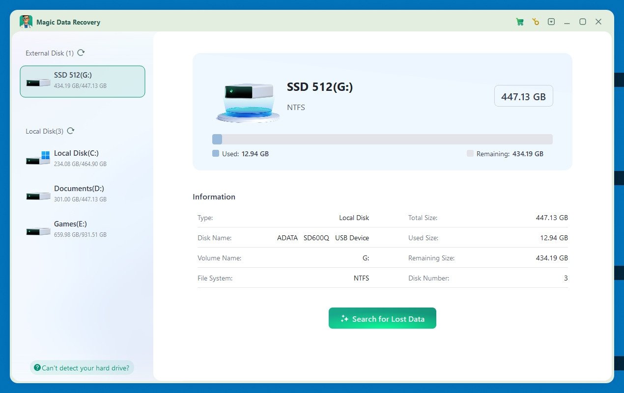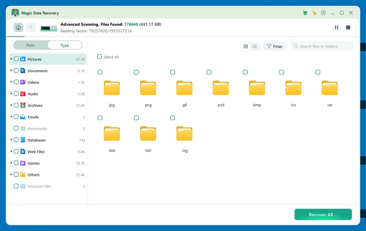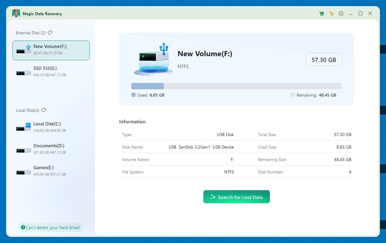 Sin embargo, aunque Magic Data Recovery resulta muy útil, tiene límites. Por ejemplo, la versión gratuita solo permite recuperar hasta 500 MB. Aun así, frente a otras opciones del mercado destaca por su interfaz sencilla y por su amplia compatibilidad con más de 5,000 formatos y tipos de almacenamiento.