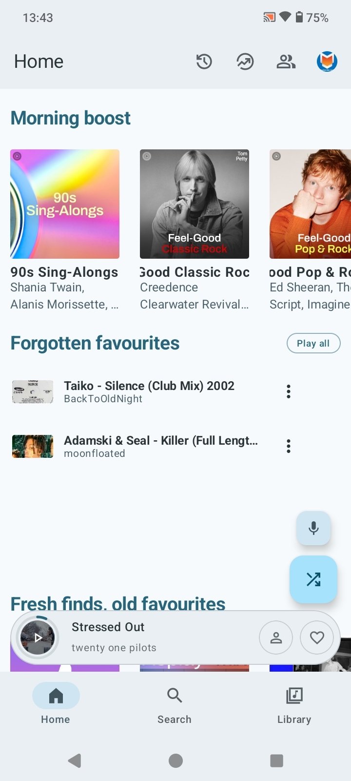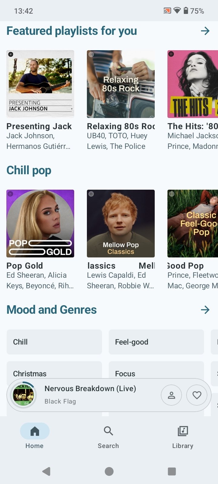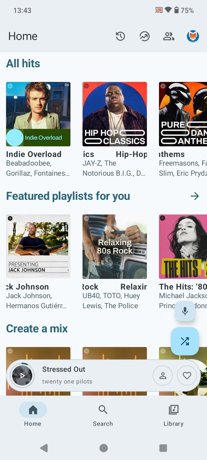 - Pantalla de inicio personalizada con canciones, artistas y lanzamientos recientes.