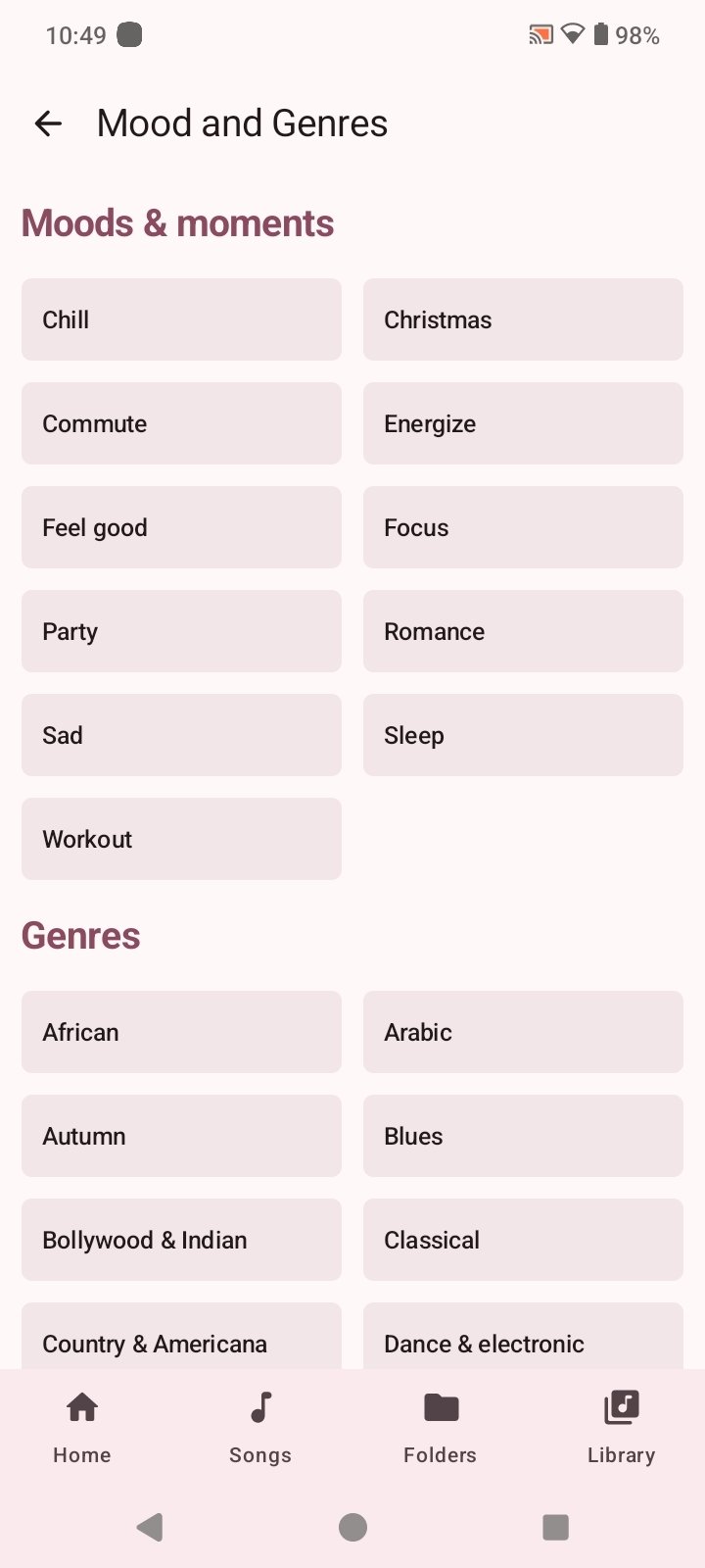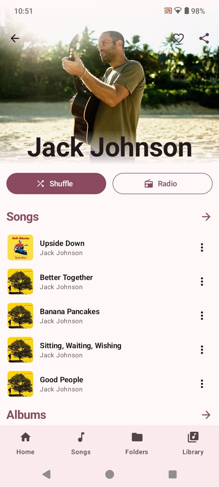 - Gestión avanzada de biblioteca con filtros por artista, álbum y género.