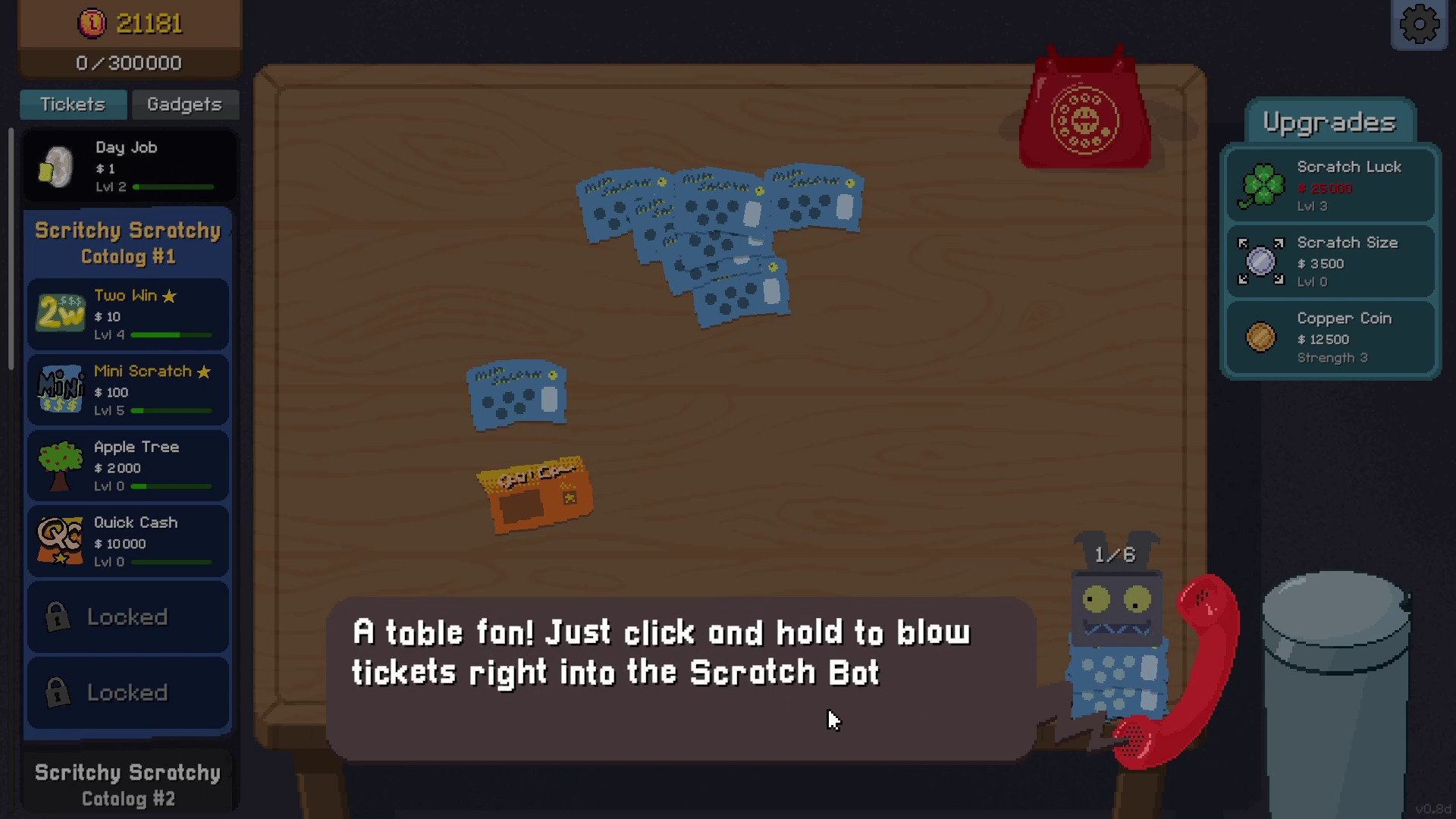 Scritchy Scratchy para PC es un juego incremental basado en raspar boletos para obtener monedas y mejoras. A medida que avanzas, desbloqueas nuevos boletos con reglas y riesgos variados que combinan suerte y estrategia. Descarga Scritchy Scratchy y comienza a disfrutar de esta experiencia muy entretenida y satisfactoria.