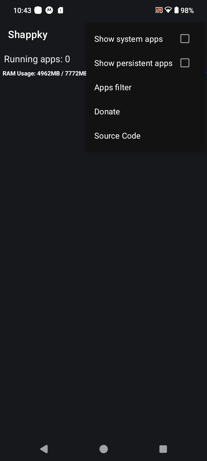 Shappky APK, abreviatura de Shell App Killer, es una app de sistema para Android diseñada para detener aplicaciones en segundo plano de manera sencilla utilizando permisos root o Shizuku. El objetivo principal de esta herramienta de código abierto es mejorar el rendimiento del dispositivo, reducir el uso de memoria RAM y rebajar la temperatura de trabajo, todo ello desde una interfaz funcional y minimalista.
