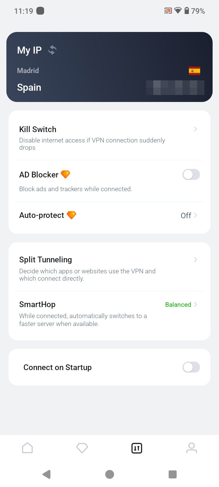 - Conexión a la VPN con un solo toque desde la pantalla principal.