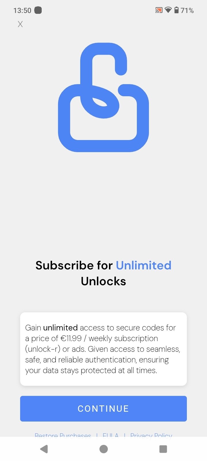 El flujo de uso es directo: tras añadir una cuenta mediante la interfaz, Unlock-r genera códigos de acceso temporales que se pueden usar para iniciar sesión o autenticar acciones con mayor seguridad. La experiencia inicial es intuitiva, y la app hace hincapié en la protección de los datos sin intervención de terceros. Sin embargo, el servicio requiere suscripción.